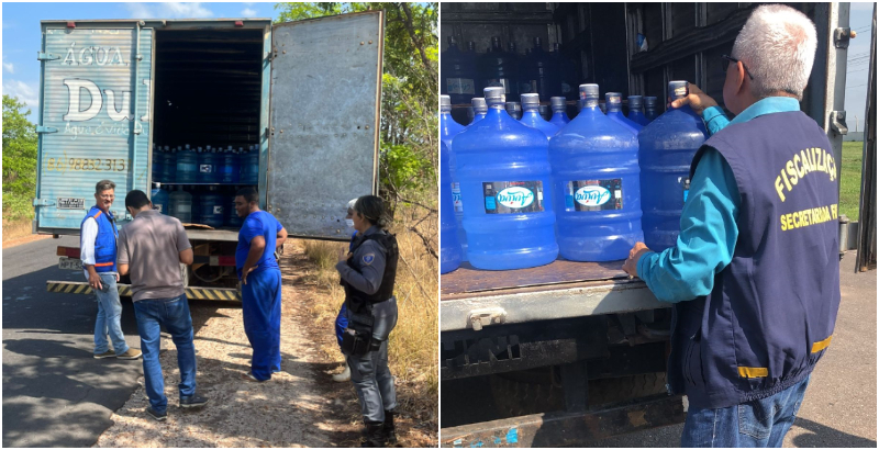 A operação fiscalizou simultaneamente os garrafões com água em caminhões, depósitos e distribuidoras, identificando a quantia de aproximadamente 1.000 garrafões de água mineral e adicionada de sais, de 20 litros, sem selo fiscal; e cerca de 2.000 garrafões sem o acompanhamento das referidas notas fiscais.