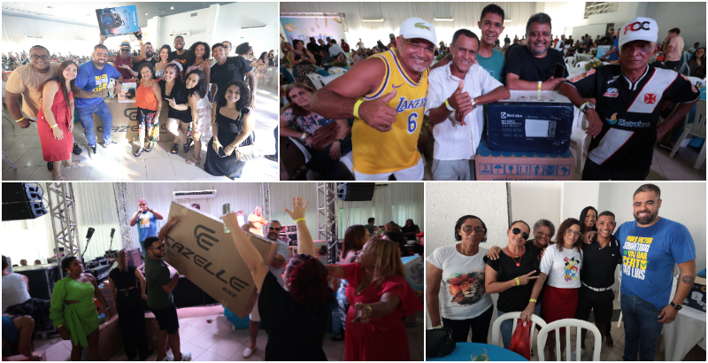 A confraternização natalina dos servidores foi encerrada em grande estilo com sorteio de brindes. Além de geladeiras, TVs, ventiladores e outros eletrodomésticos, o evento deste ano contou com sorteios de 20 pix de R$ 300,00 e uma Honda Pop.