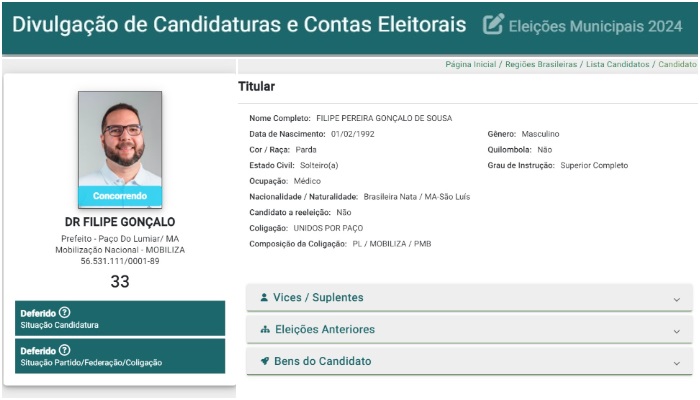 O deferimento da candidatura atesta que o jovem médico luminense está apto a concorrer às eleições de 2024, e não possui nenhuma restrição na Justiça.