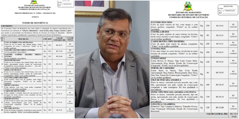 Nem mesmo a recente pesquisa do Instituto Brasileiro de Geografia e Estatística (IBGE) que aponta o Maranhão em primeiro lugar no ranking da fome no Brasil parece ter sensibilizado o governador Flávio Dino (PSB) para a gravidade da situação. Em meio à miséria absoluta para a qual foram arrastados 400 mil maranhenses desde 2015, quando Dino assumiu o poder no estado, as geladeiras do Palácio dos Leões serão reabastecidas com picanha bovina, maminha, contra-filé, pernil de carneiro, filé de pescada e outras iguarias que o povo maranhense mais humilde nem sonha em ter à mesa. Custo total da comilança: R$ 153.894,80 (cento e cinquenta e três mil, oitocentos e noventa e quatro reais e oitenta centavos).