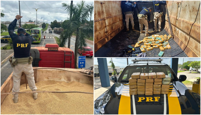 Na manhã do último sábado (21), uma ação conjunta entre a Polícia Rodoviária Federal (PRF), a Polícia Civil (PCMA) e a Polícia Militar do Maranhão (PMMA) resultou na apreensão de mais de 120 kg de cloridrato e pasta base de cocaína. A apreensão aconteceu durante fiscalização a uma carreta carregada de soja, no km 14 da BR-135, em São Luís (MA).