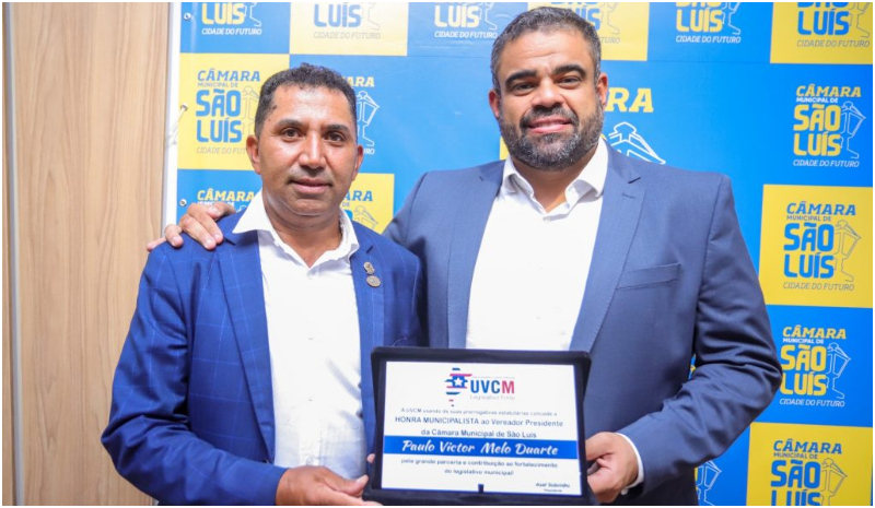 Ainda na manhã dessa quarta-feira, o presidente da Câmara recebeu uma homenagem da União de Vereadores e Câmaras do Maranhão. Ele recebeu a Honra Municipalista concedida pela grande parceria e contribuição ao fortalecimento do legislativo municipal.