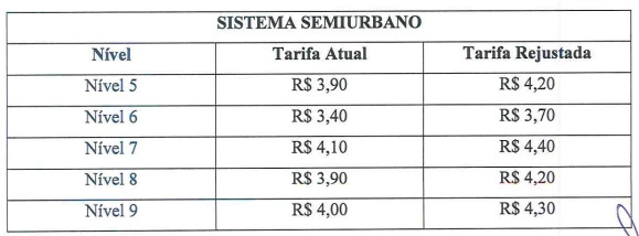 Em seguida, as linhas que operam no sistema semiurbano de passageiros e Expresso Metropolitano também tiveram aumento da tarifa.