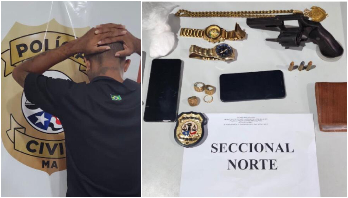 A Polícia Civil do Maranhão, por intermédio da Seccional Norte, vinculada a Superintendência de Polícia Civil da Capital, prendeu em flagrante delito na tarde desta sexta-feira (15), na Vila Sarney Filho, um homem de 29 anos, após o avistarem em via pública portando ilegalmente uma arma de fogo e duas porções de cocaína.
