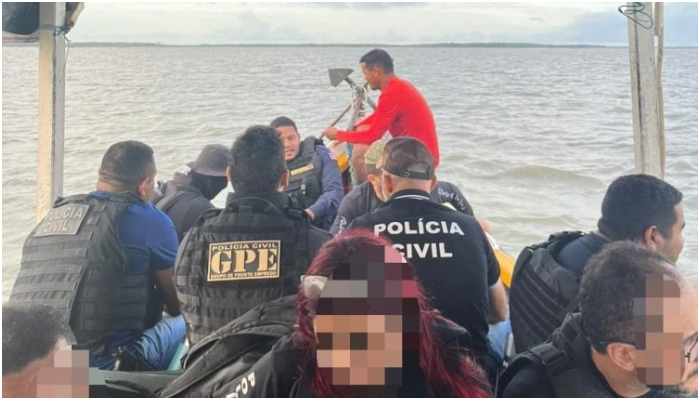 De posse das ordens judiciais, os policiais embarcaram com destino à ilha , em um trajeto de três horas de viagem.