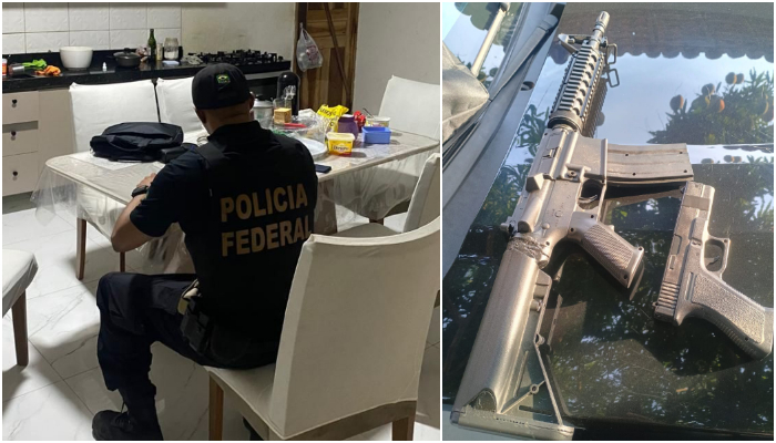 Durante o cumprimento dos mandados de busca, foram apreendidos simulacros de arma de fogo, além das armas funcionais pertencentes aos policiais militares, as quais serão submetidas aos procedimentos legais cabíveis.
