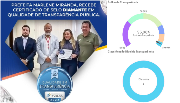 “Somos Diamante em Transparência Pública! A Prefeita Marlene Miranda, recebe o certificado selo diamante em qualidade de transparência, aonde somente 12% dos municípios de todo Brasil atingiram esse meta, e no estado do Maranhão somente duas cidades.