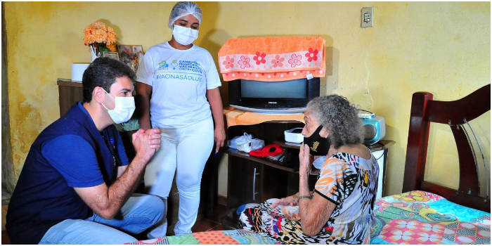 A medida tomada pela Prefeitura de São Luís foi um alívio para Maria Geralda dos Santos, 95 anos, e sua família. A idosa tem dificuldades de se locomover. Por isso não teria como ir aos postos de vacinação montados na cidade. “Eu estou muito agradecida. Deus mandou essa vacina para a gente e eu fui vacinada aqui na minha casa”, disse logo após receber a primeira dose do imunizante.