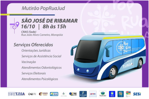 Nesta quinta-feira (16), São José de Ribamar será palco de uma importante ação de cidadania e inclusão social. A Prefeitura Municipal, em parceria com o Tribunal de Justiça do Maranhão (TJMA), realiza mais uma edição do mutirão PopRuaJud, que acontecerá no Centro de Referência de Assistência Social (CRAS), localizado na Rua João Alves Carneiro, no bairro Moropóia, das 8h às 15h.