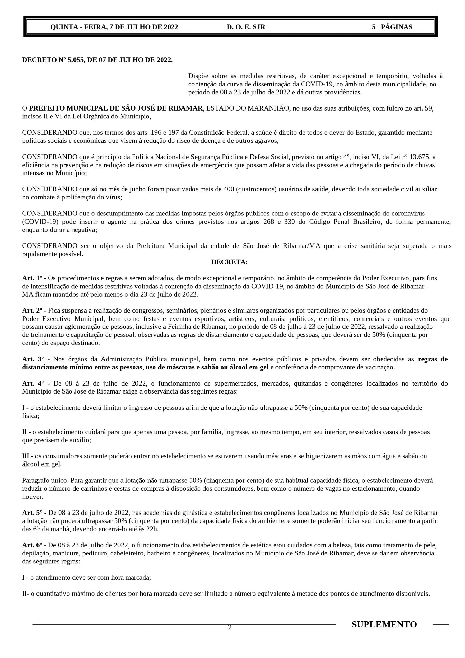 Para garantir a segurança dos ribamarenses, equipes da prefeitura estarão nas ruas para fiscalizar e tomar as devidas providências em caso de descumprimento do protocolo sanitário lançando pela Prefeitura.