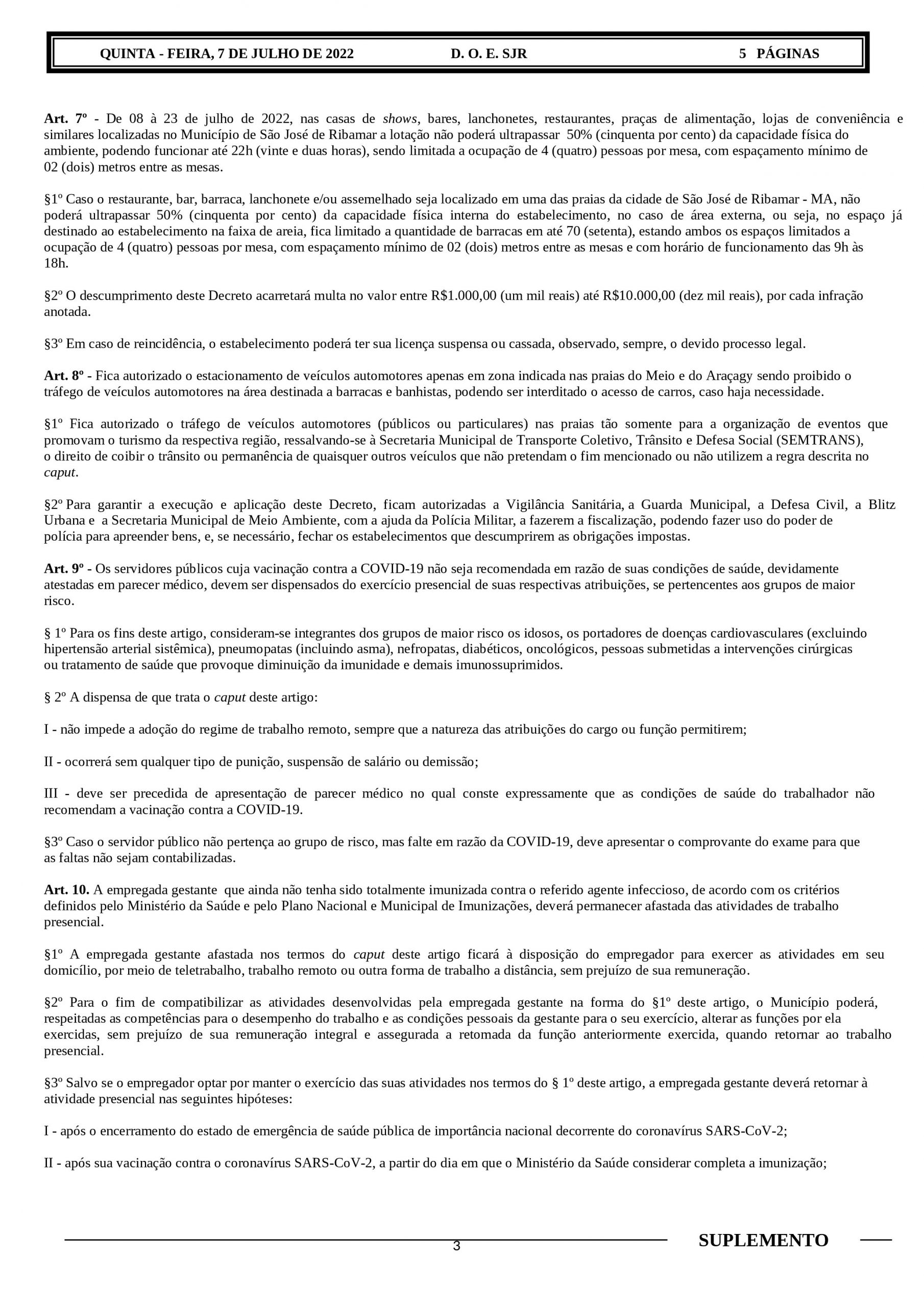 Com isso, a prefeitura decreta, no período de 8 a 23 de julho, a lotação de 50% em bares, restaurantes, casas de shows, lanchonetes, praças de alimentação e similares, podendo funcionar até às 22h e com o uso obrigatório de máscara, entre outras determinações.