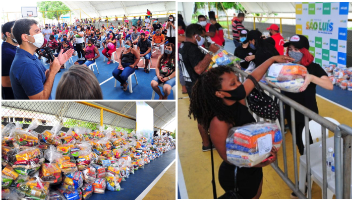 A Prefeitura de São Luís fez a entrega de 800 cestas básicas a trabalhadores do comércio informal que tiveram perda em sua renda por causa da não realização de festas carnavalescas este ano, em decorrência da pandemia de Covid-19. A entrega aconteceu na manhã deste sábado (20), no Parque do Bom Menino, e foi acompanhada pelo prefeito Eduardo Braide, que destacou a importância da ação.