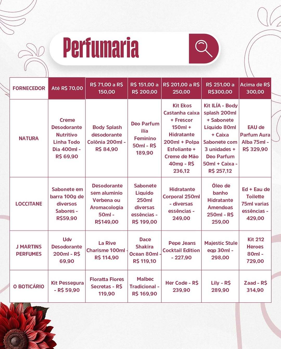 Entre os demais produtos avaliados — como joias, perfumaria, relógios, bolsas, sapatos e celulares —, é possível encontrar opções de presentes que vão desde perfumes a partir de R$ 59,90 até smartwatches que custam cerca de R$ 4.000,00.