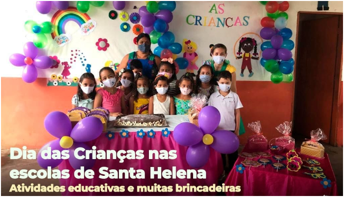 O Dia das Crianças foi celebrado com muita festa nas escolas municipais de Santa Helena. Os pequenos participaram de diversas atividades educativas, brincaram muito e saborearam guloseimas que toda criança gosta.
