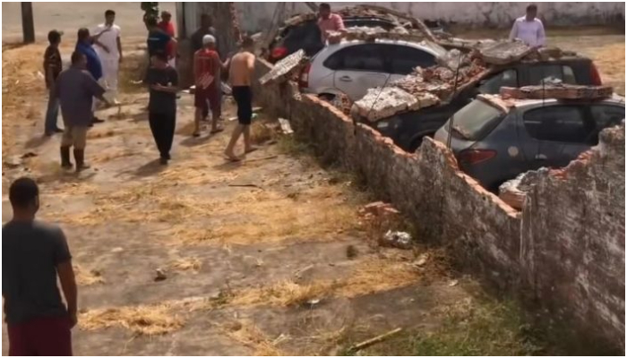 VÍDEO | Muro da Delegacia do Vinhais desaba e atinge veículos estacionados